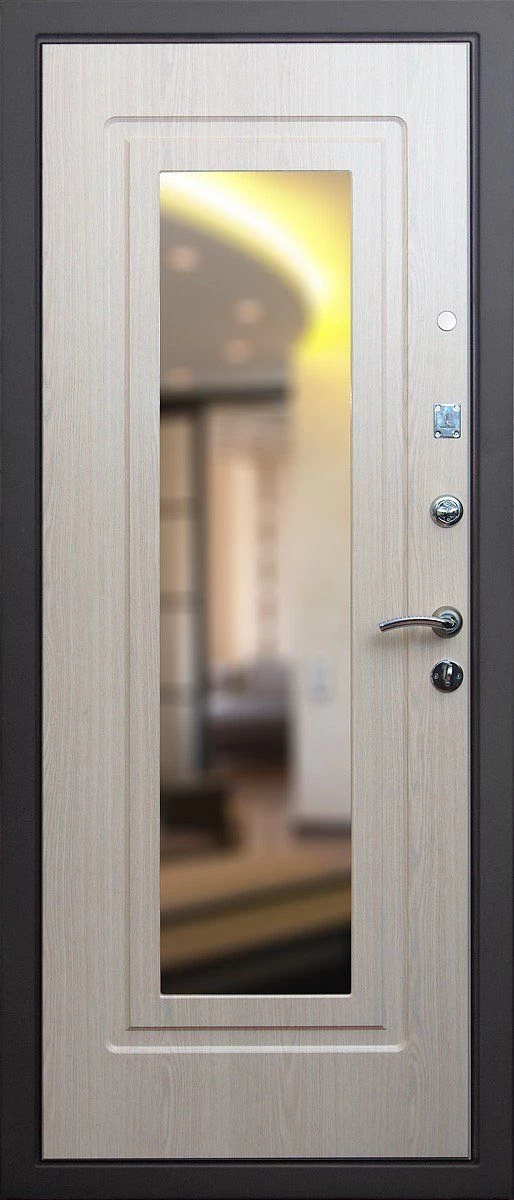 Прочная металлическая Дверь с зеркалом DZ385 по цене от 30 000 руб. под заказ в любой комплектации. Вы можете выбрать материал, замки, цилиндры и многое другое. Производим сами! Быстрая доставка и установка в Кумертау.