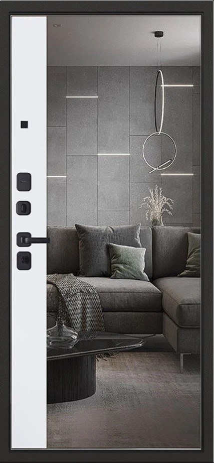 Надежная входная Дверь Scandi с зеркалом премиум класса по цене 45 239 руб. Большая толщина стали защитит от проникновения в ваш дом, квартиру или коттедж. Используется очень качественная фурнитура: замки, цилиндры, ручки, защелки. Покрытие и отделка двери изготовлено под внимательным контролем производителя. Дверь имеет долгий срок службы и гарантию.